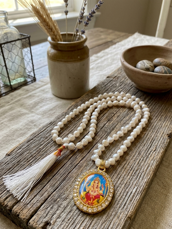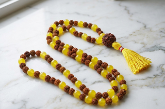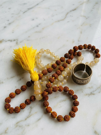 Each bead carries natural texture and grounding energy, making it ideal for daily japa meditation, yoga practice, or as a meaningful spiritual accessory. Whether worn as a necklace or used in prayer rituals, this mala supports a calm mind, open heart, and elevated consciousness.